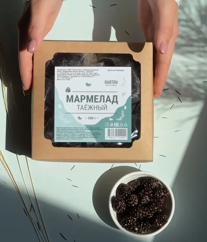 Состав мармелада «Таежный» – сахар, отвар из сосновой шишки, патока, пектин, лимонная кислота, растительное масло, пчелиный воск.